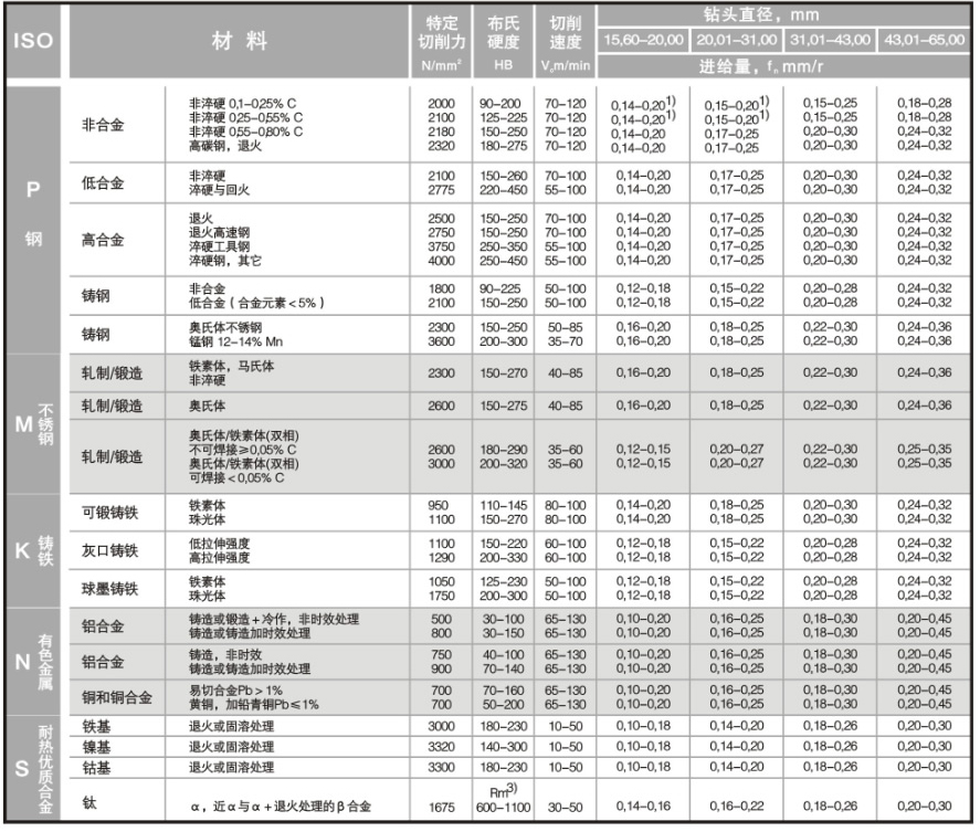 QYZ深孔鉆系統(tǒng)切削參數(shù)表
