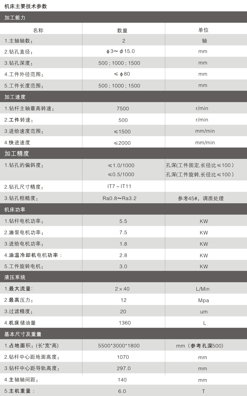 孔深范圍:500mm;1000;1500(長(zhǎng)徑比≤100)