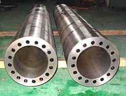 工件裝夾形式:筒體左側(cè)液壓卡盤夾持,筒體右側(cè)液壓中心架夾持,工件可數(shù)控繞軸線分度。 工件一次裝夾,每次鉆削兩個(gè)孔,可完成多個(gè)孔的加工。