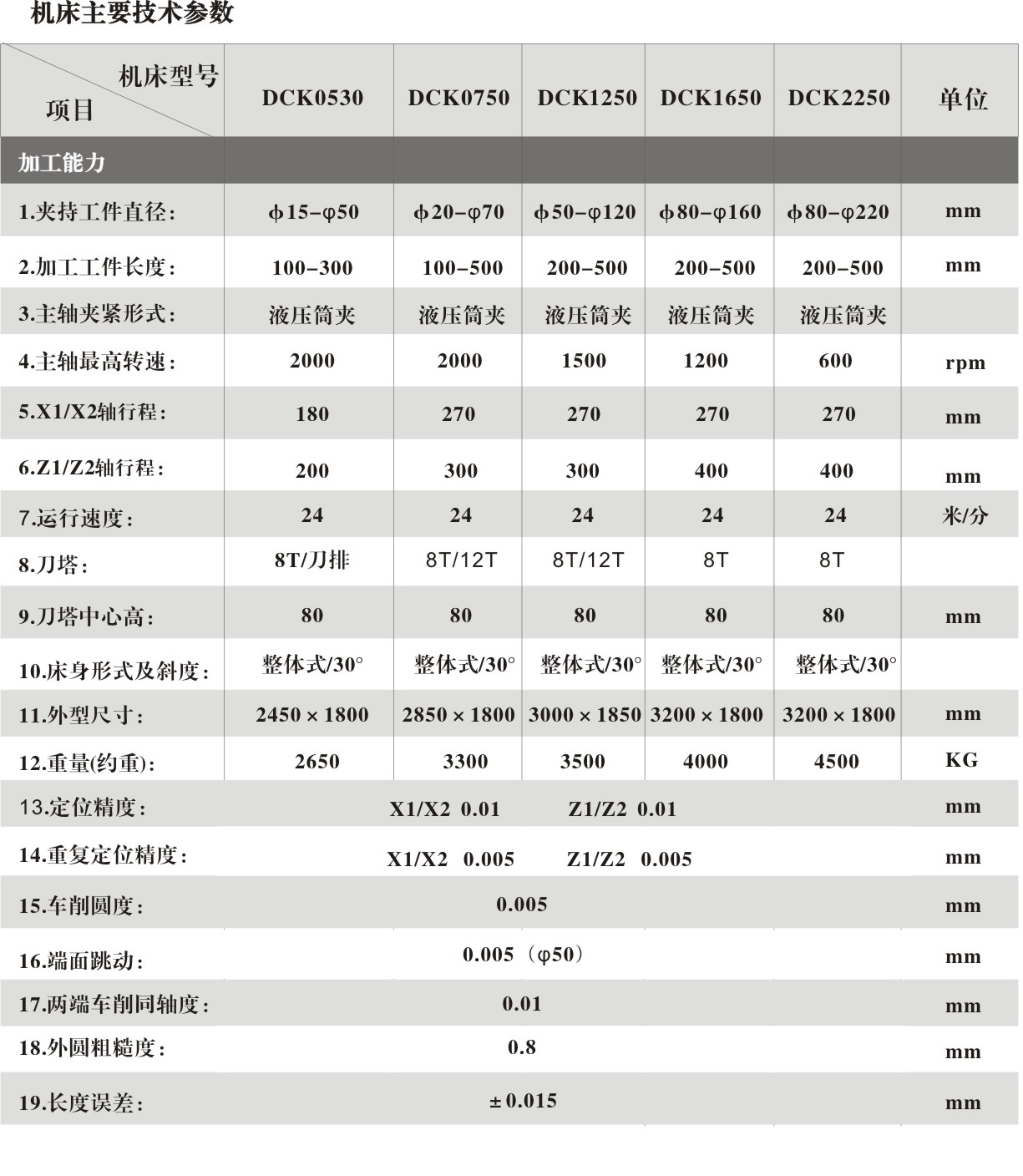 簡要說明:DCK0750雙頭車床采用整體30°斜背式高剛性鑄件床身; 工件主軸箱位于床身中部,采用中空雙筒夾液壓夾緊工件,變頻電機(jī)皮帶傳動帶動主軸旋轉(zhuǎn); 左右刀架為伺服刀塔,分布于主軸箱兩側(cè),為對稱結(jié)構(gòu); 左右刀架均采用X、Z兩軸驅(qū)動,X軸、Z軸為滾珠絲桿與伺服電機(jī)直聯(lián)。 該機(jī)控制部分采用臺灣新代數(shù)控系統(tǒng),可實現(xiàn)多任務(wù)控制,兩側(cè)刀塔可獨立工作,互不干擾。 該機(jī)具有高效、高精度、高柔性、節(jié)能環(huán)保等特點,便于自動化連線,可實現(xiàn)一人多機(jī)作業(yè),大幅降低制造成本。