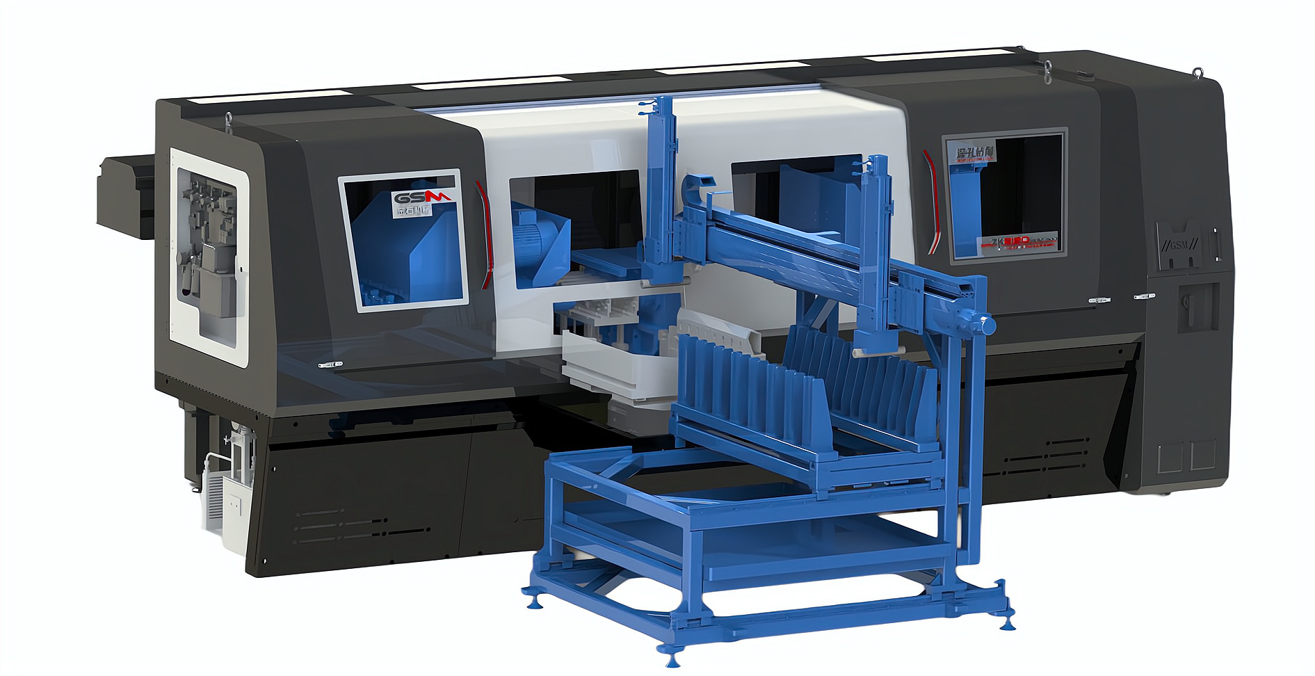 ZK2120×4B/500A 深孔鉆床配置桁架機械手,加工新能源電機軸,單機自動化