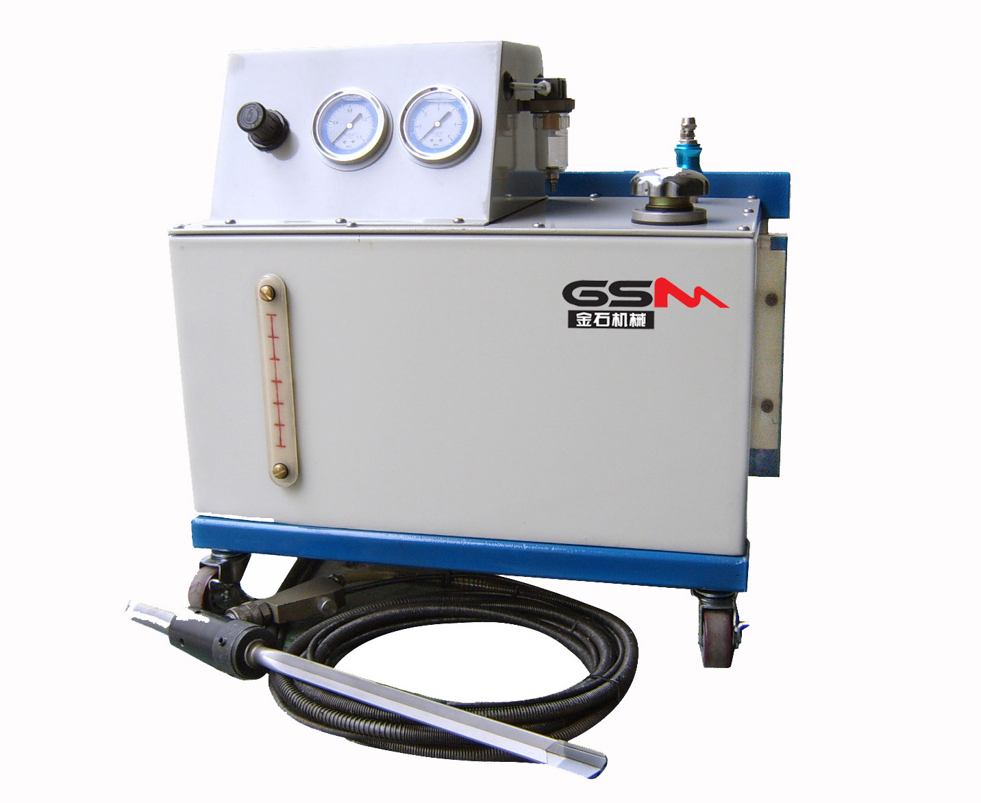采用特制氣動脈沖泵。經(jīng)氣動增壓后,給深孔鉆系統(tǒng)提供冷卻。與QYZ-40W相