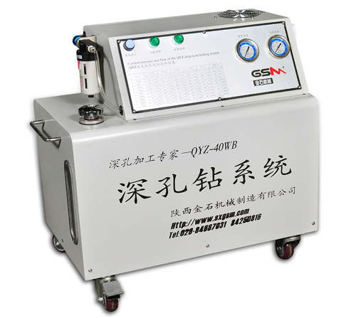 QYZ深孔鉆系統(tǒng)是由槍鉆、系統(tǒng)主機(jī)(冷卻霧化系統(tǒng))、旋轉(zhuǎn)夾具、固定刀夾、增速器、固定刀夾、變徑套、專用水基切削液等組成。 系統(tǒng)主機(jī)規(guī)格有QYZ-25W和QYZ-40WB兩種。刀具或工件的旋轉(zhuǎn)、切削進(jìn)給均由改造機(jī)床提供,系統(tǒng)各部分作為機(jī)床附件,組裝拆卸簡單便捷。