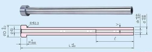 頂針、司筒是模具行業(yè)最常用零部件。頂針與司筒配合使用。司筒零件最典型的特點是內(nèi)孔為臺階孔,臺階孔內(nèi)徑相差0.5~1.0mm。該臺階孔的加工,是司筒零件整個加工過程中最大的難點。